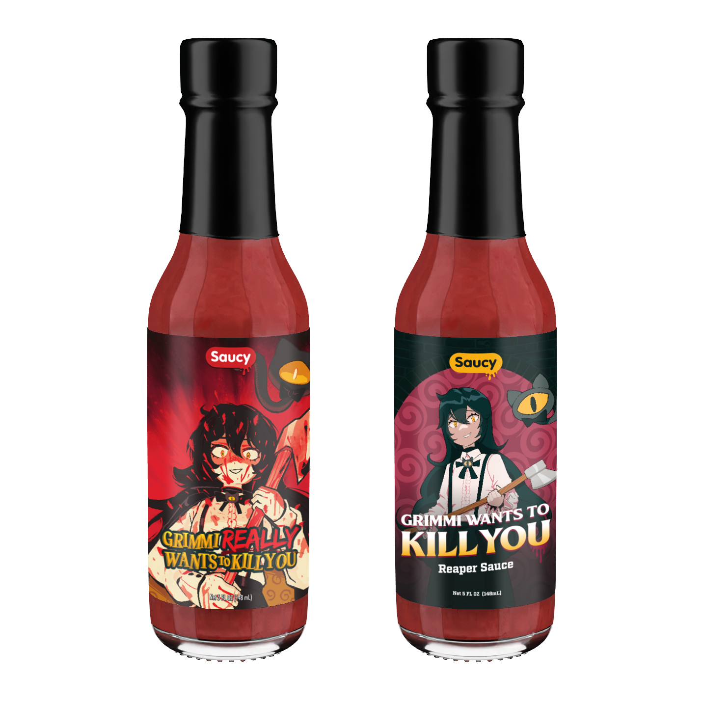 One 5 oz. bottle of Grimmi Wants to Kill You and Grimmi Really Wants to Kill You sauces!